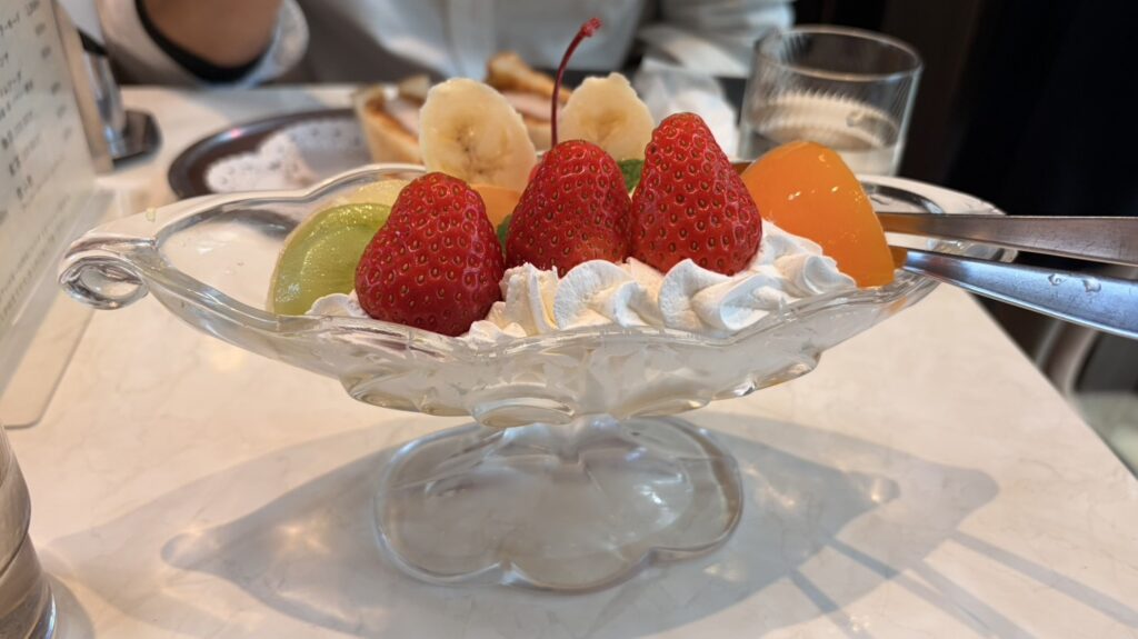 ここの「プリンアラモード」がかわいくて、とってもおいしいですよ。