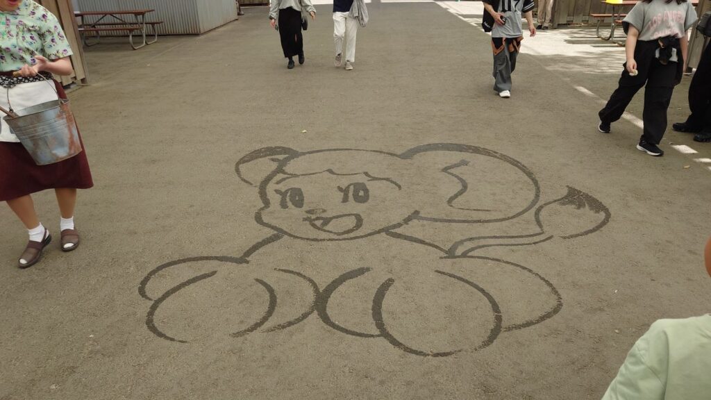 - 銭湯屋さんが、水で地面に絵を描いてくれるショー